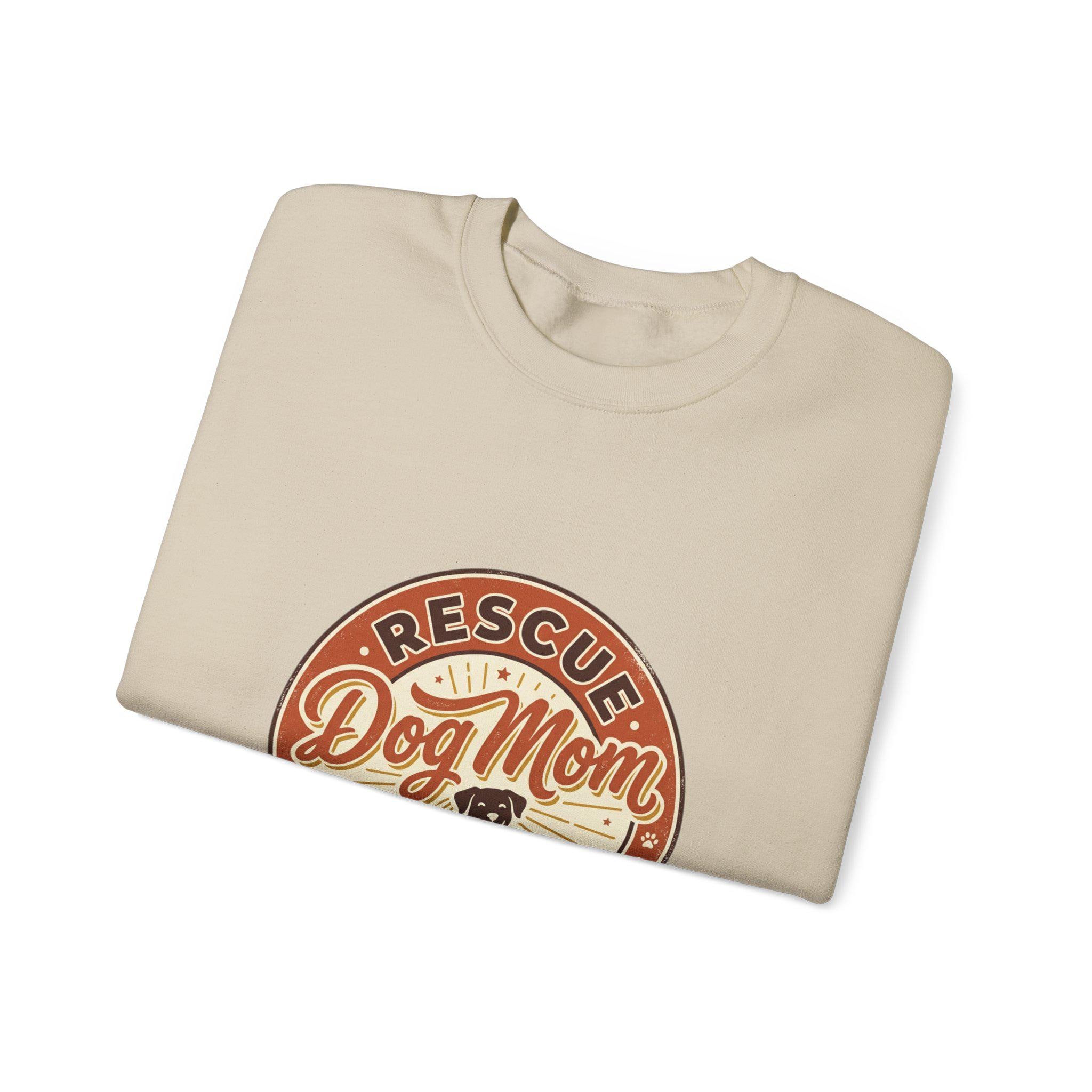 Rescue Dog Mom crewneck featuring a warm, vintage-inspired circular badge with friendly serif script and a simple dog silhouette—designed for proud pet parents who celebrate rescue identity. The soft neutral palette and slightly distressed print give a lived-in, bookish vibe that pairs well with casual wardrobes and cozy afternoons with your fur baby. Works as everyday wear for dog moms who want a subtle, heartfelt declaration of rescue pride without loud graphics.